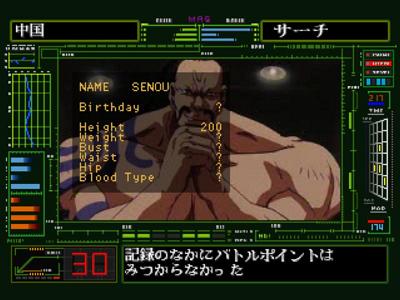 Mientras tanto en algún lugar Camboya una gran nave se introduce en un supuesto monumento arquitectónico de una antigua civilización que no es nada más y nada menos que la base secreta de Shadaloo. Bison y sus tres 3 reclutas son recibidos por Senoh, científico de la organización, quien les muestra la finalización de su proyecto: un modelo de cyborg monitorizado de apariencia humana que analiza y trasmite los datos del luchador que captura con la mira de su ojo izquierdo. Anteriormente se había usado en la pelea de Ryu y Sagat, y los datos de batalla del primero tenían una medida de 3620. Senoh cree que el potencial de Ryu se debe más a una falla que a la realidad, pero Bison insiste en capturarlo.